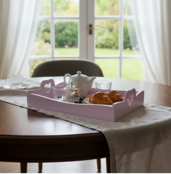 Bandeja alça coração retangular decorada mdf