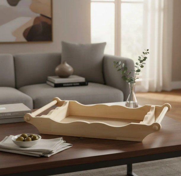 Bandeja alça palito em madeira pinus